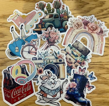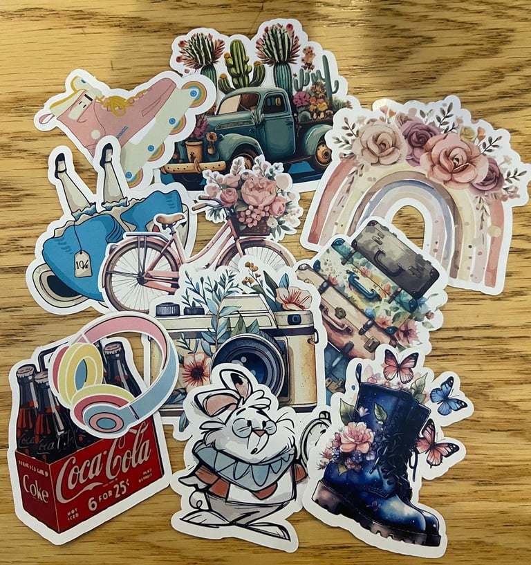 Stickers adhesivos resistentes, ideales para personalizar de acuerdo a tu estílo.